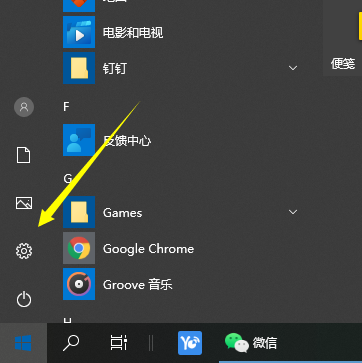 1、点击桌面左下角的开始菜单图标,选择设置按钮打开。