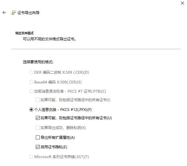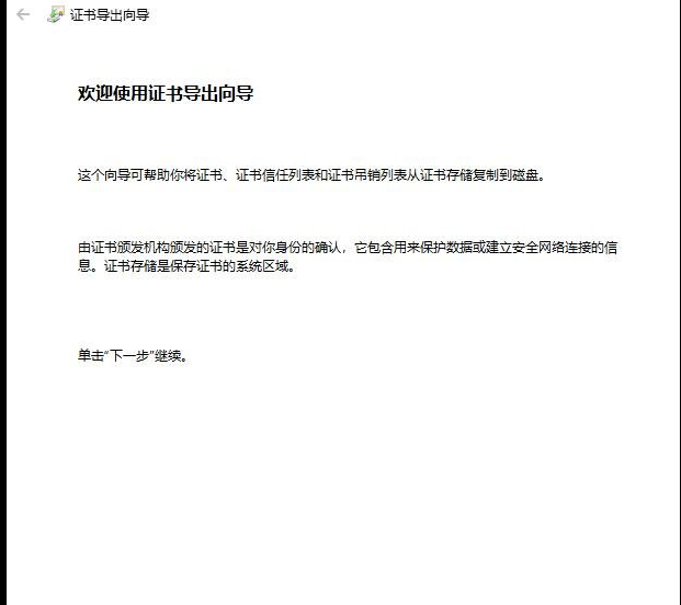 然后在证书导出向导中点下一步: