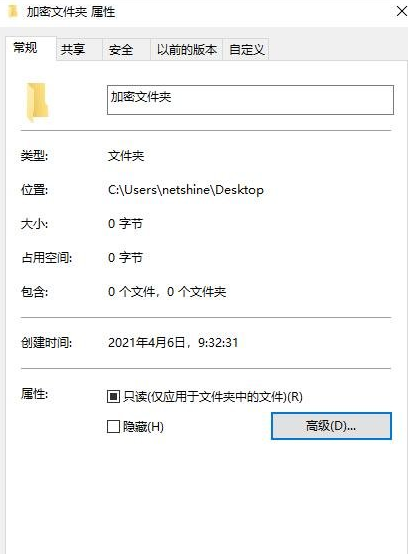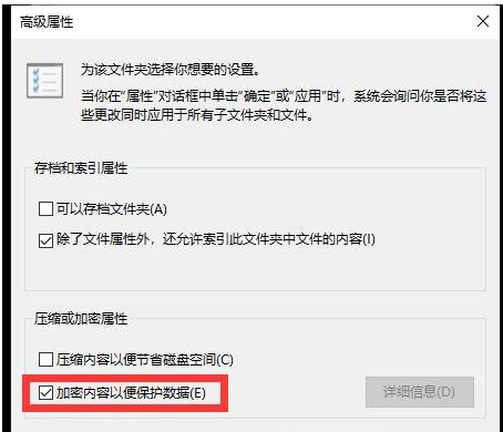 在高级属性中勾选加密内容以便保护数据,确定: