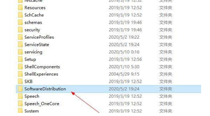 4.在进入的页面中我们找到有个叫SoftwareDistribution的文件夹,进入该文件夹当中。