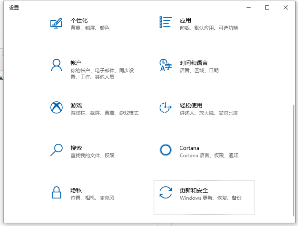 2、在设置界面打开更新和安全。