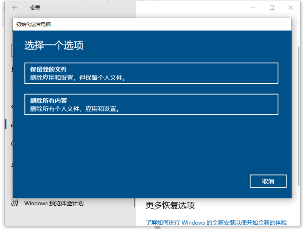 4、选择你的重置方式,可以选择保留以前的设置与否。