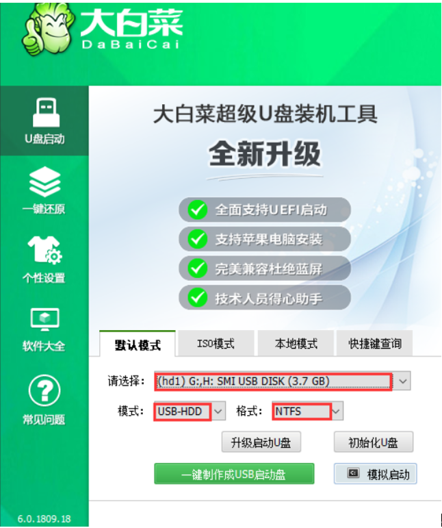 软件版本:大白菜超级U盘装机工具 v6.0.1905.1