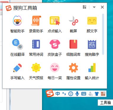 1、点击输入法的工具箱图标打开工具箱。