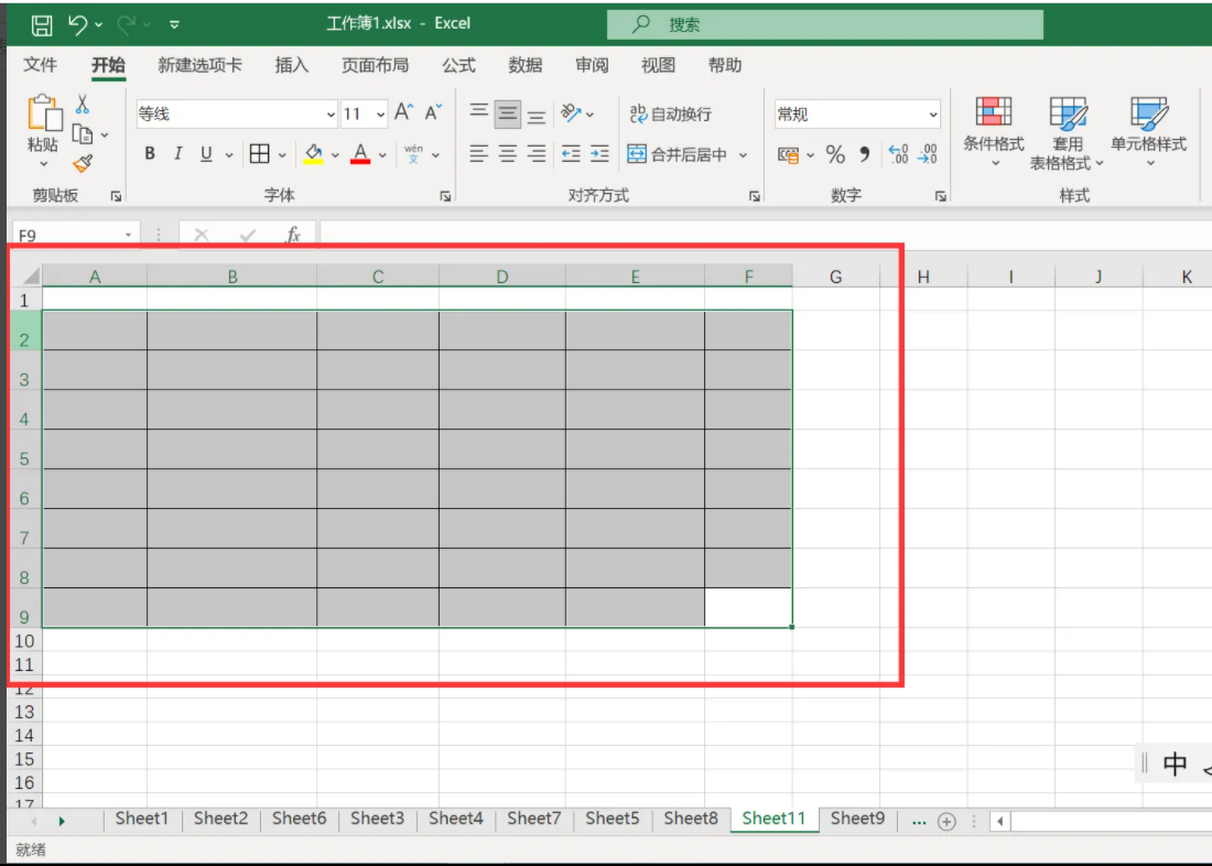 1、选中区域
