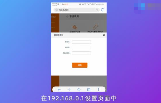 2. 连接需要修改密码的WiFi后,打开浏览器,在页面的搜索栏上输入192.168.0.1。