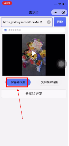 3、进入小程序粘贴链接,提取视频保存到相册。