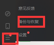 1、打开电脑微信端点击左下方三条杠,点击“备份与修复”。
