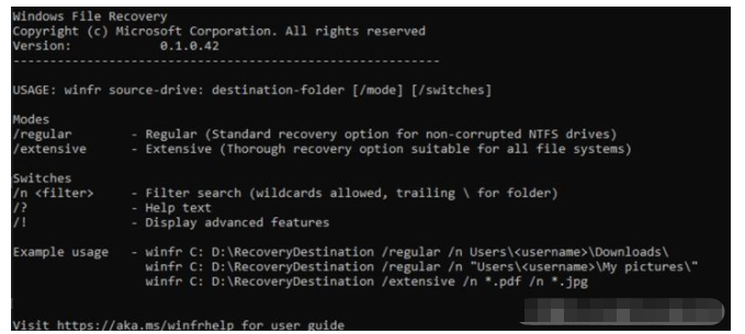 微软出品必属精品,虽然没有图形界面,但他是完完全全免费的,就是有点费人!另外, Win10 2004 版本以上才可以使用,可根据关键词、文件路径、文件名称、扩展名恢复,支持 NTFS、FAT、exFAT、ReFS 文件系统。