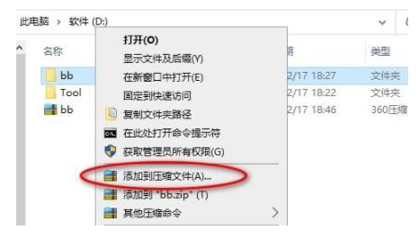 2、右击文件夹,点击“ 添加到压缩文件 ”。