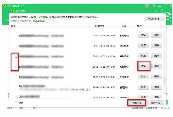 3、进入恢复区界面中选择需要恢复的软件,点击右侧的恢复选项即可。