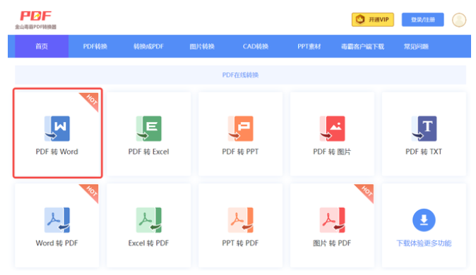 如果你不想安装新软件,也可以选择在线转换,无需安装软件,在网页上就可以轻松完成PDF转Word的处理。首先我们在浏览器中搜索并打开“金山毒霸PDF在线转换器”,选择“PDF转Word”功能,按照提示上传PDF文件,就可以进行格式转换了,转换完成后可直接下载到自己的计算机上。