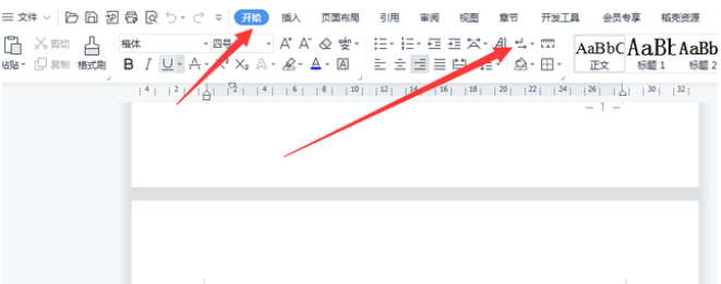 1、首先点击开始按钮,选择后面图标显示的这个,把显示隐藏段落标记这个按钮打开。