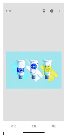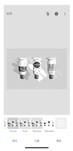 3.然后点击底部的添加图片按钮,再次从相册中选择原先导入的图片作为背景。随后我们点击底部的样式,选择一款黑白样式。