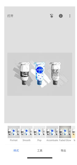 1.打开snapseed应用程序。点击主界面的“+”号或左上角的“打开”从本地相册中导入需要编辑的图片。