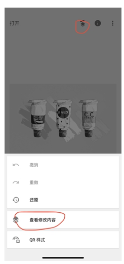 4.然后我们点击顶部红圈内的按钮,在弹出的菜单栏中选择“查看修改内容”。