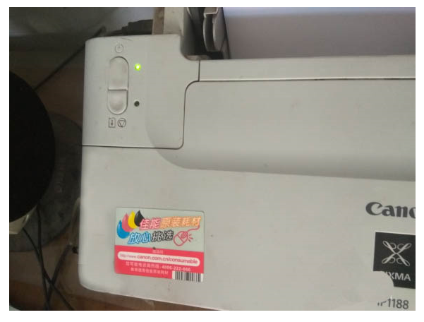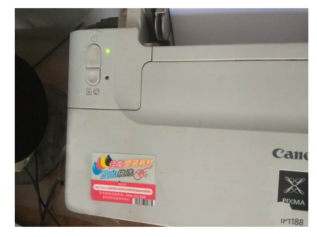 2、此时打印机机箱上的黄灯一直亮着,绿灯偶尔一闪烁。