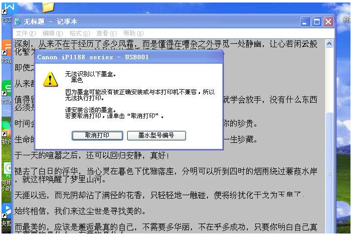 1、在电脑上打印文件时,打印机弹出界面显示无法识别下列墨盒。