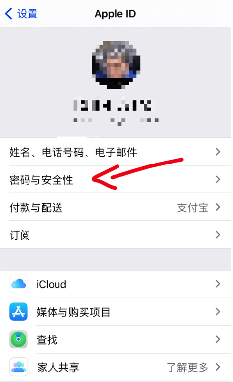1、直接在apple设备的设置菜单,点击Apple ID,然后继续点击【密码与安全性】进入。