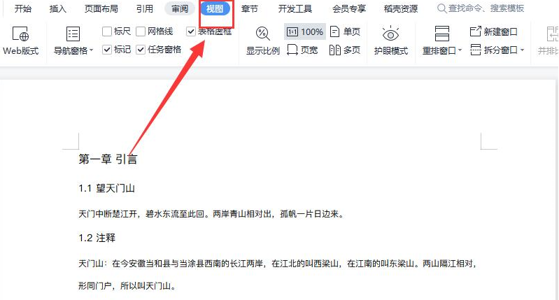 1、打开Word文档,然后点击菜单栏中的“视图”。
