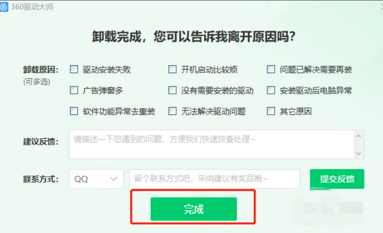 5、在弹出的窗口中单击完成,360驱动大师卸载就完成了。