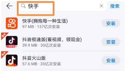 3、我们在搜索框中输入“快手”,单击右侧的搜索。