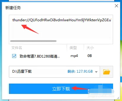2、这时就可以将电影的下载链接粘贴进去,点击“立即下载”。