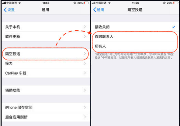 2、依次打开【通用】-【隔空投送】-选择【所有人】