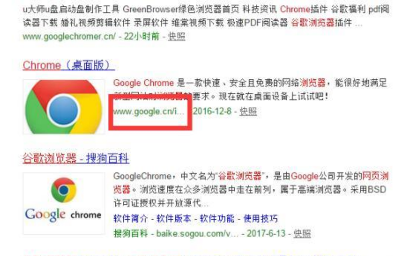2、在搜索结果中有很多第三方网站可以下载到谷歌浏览器,我们找到在url中带有google的,就是谷歌官方网站,然后点进去。