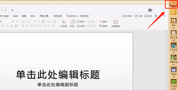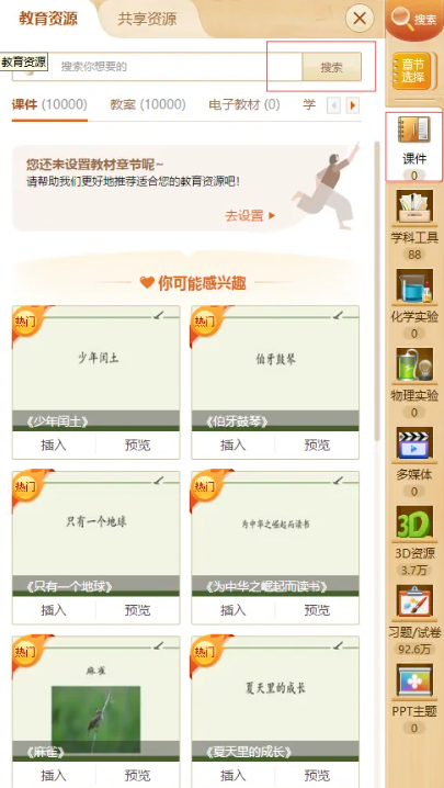 3、也可点击右侧工具栏中的“课件”,寻找自己需要的课件。