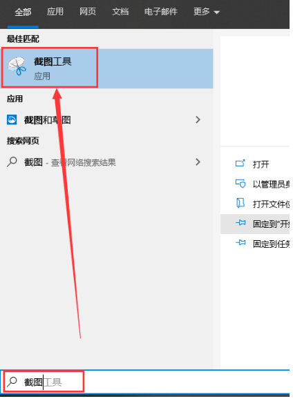 1、首先同时按下键盘win+s键,在搜索框中输入截图,接着找到截图工具。
