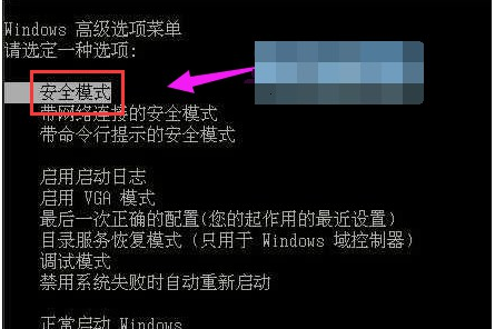 1、 当我们的电脑蓝屏代码显示为0x0000007e时,很有可能酒是中了病毒或内存条出现故障,重启电脑时按F8进入Windows高级选项菜单,点击“安全模式”。