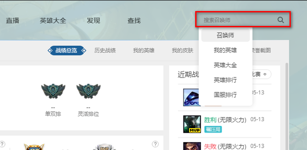 8、如果想要查别人的战绩,可以点击右上方的搜索框进行搜索。