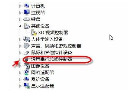 2、点击展开其中的“通用串行总线控制器”。