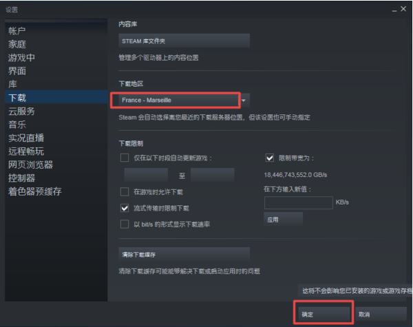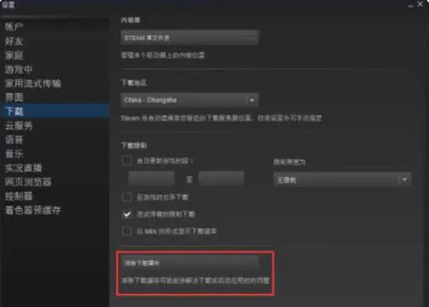 在steam内设置不限速度的情况下,取消掉“流式传输时限制下载”的选项,这样可以将全部网速投入游戏的下载中,但是这样可能会让原本的电脑在一段时间无法使用网络。