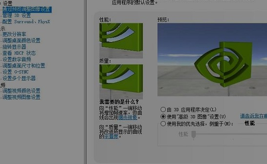 1、首先点击打开电脑的显卡控制面板,点击“通过预览调整图像设置”,按照图中所示,进行性能的调整。