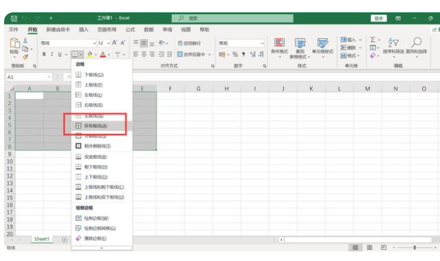 加表格的线框,点击选项栏,点开始有一个字体,字体里面有一个线框,往下拉选择所有线框。