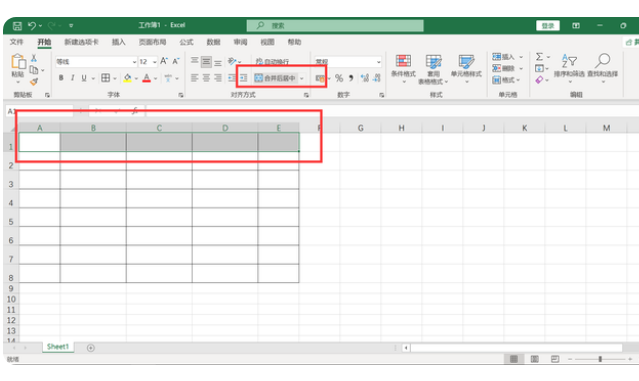 这个时候就要将所有单元格合并到一起了,要选中多个单元格,选中横向或者纵向,然后点击合并并列居中。