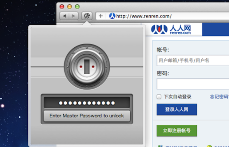 使用 1Password 非常非常简单,你在配置好 1Password 之后首次登陆其他网站时,1Password 会在浏览器顶部弹出消息,询问你是否要记住该网站的登陆信息,直接点 Save 并输入主密码,该网站的登陆信息就保存到1Password数据文件中了,在下次登陆该网站的时候,你就没有必要再手动输入用户名和密码,直接点击浏览器工具栏上的 1Password 图标(或者按快捷键command+/),然后 1Password 就会自动帮你填好用户名和密码并登陆。