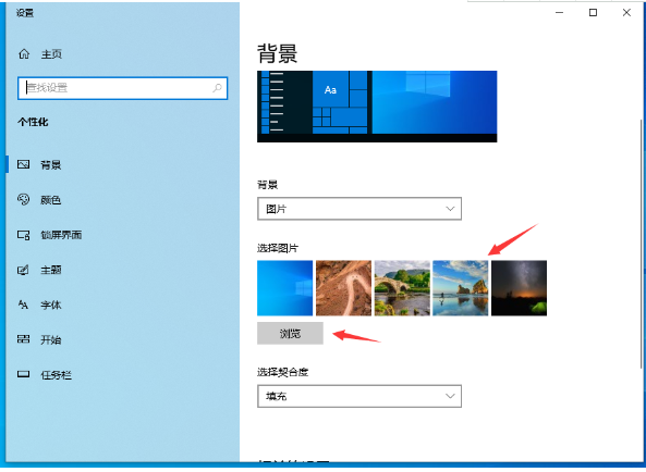 2、点击背景,这里大考可以选择系统自带或者点击“浏览”自定义背景图片。