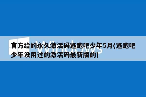 官方给的永久激活码逃跑吧少年5月(逃跑吧少年没用过的激活码最新版的)