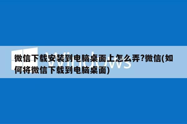 微信下载安装到电脑桌面上怎么弄?微信(如何将微信下载到电脑桌面)