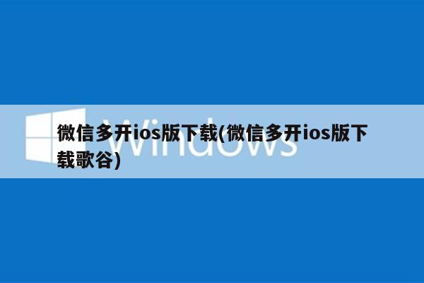 微信多开ios版下载(微信多开ios版下载歌谷)