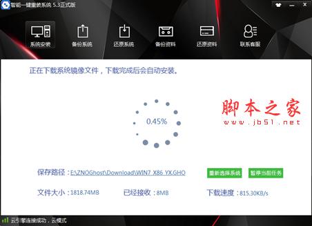 进入下载页面后,就无需在管了,程序下载完毕后,会在10秒后重启,重启过程中会安装系统