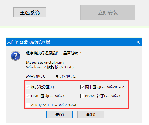 6、系统下载完成之后,点击“立即安装”;弹出的一键还原的提示窗口,点击“是”;