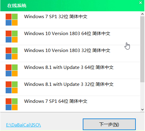 5、点击“系统下载”之后,电脑会出现Windows系统在线下载的窗口,选择我们需要的系统下载安装;