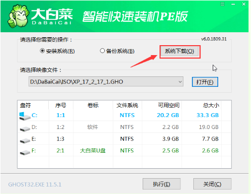 软件版本:大白菜装机软件v5.3.0