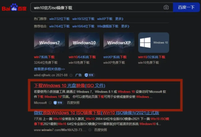 1、电脑浏览器上搜索"win10官方镜像下载”,即可找到微软官方地址进入。