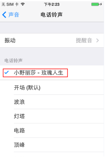 6、打开手机“设置”,进入“声音”,进入“电话铃声”,选择已下载好的“玫瑰人生”就完成了。