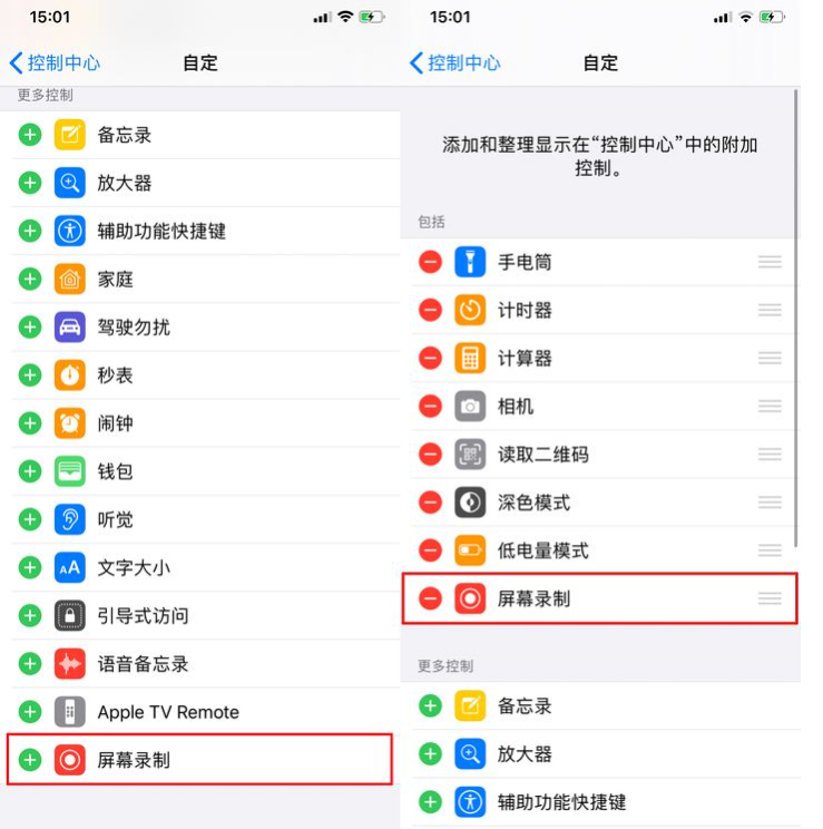 注意事项:苹果手机系统更新到iOS11版本及以上才有录屏功能。